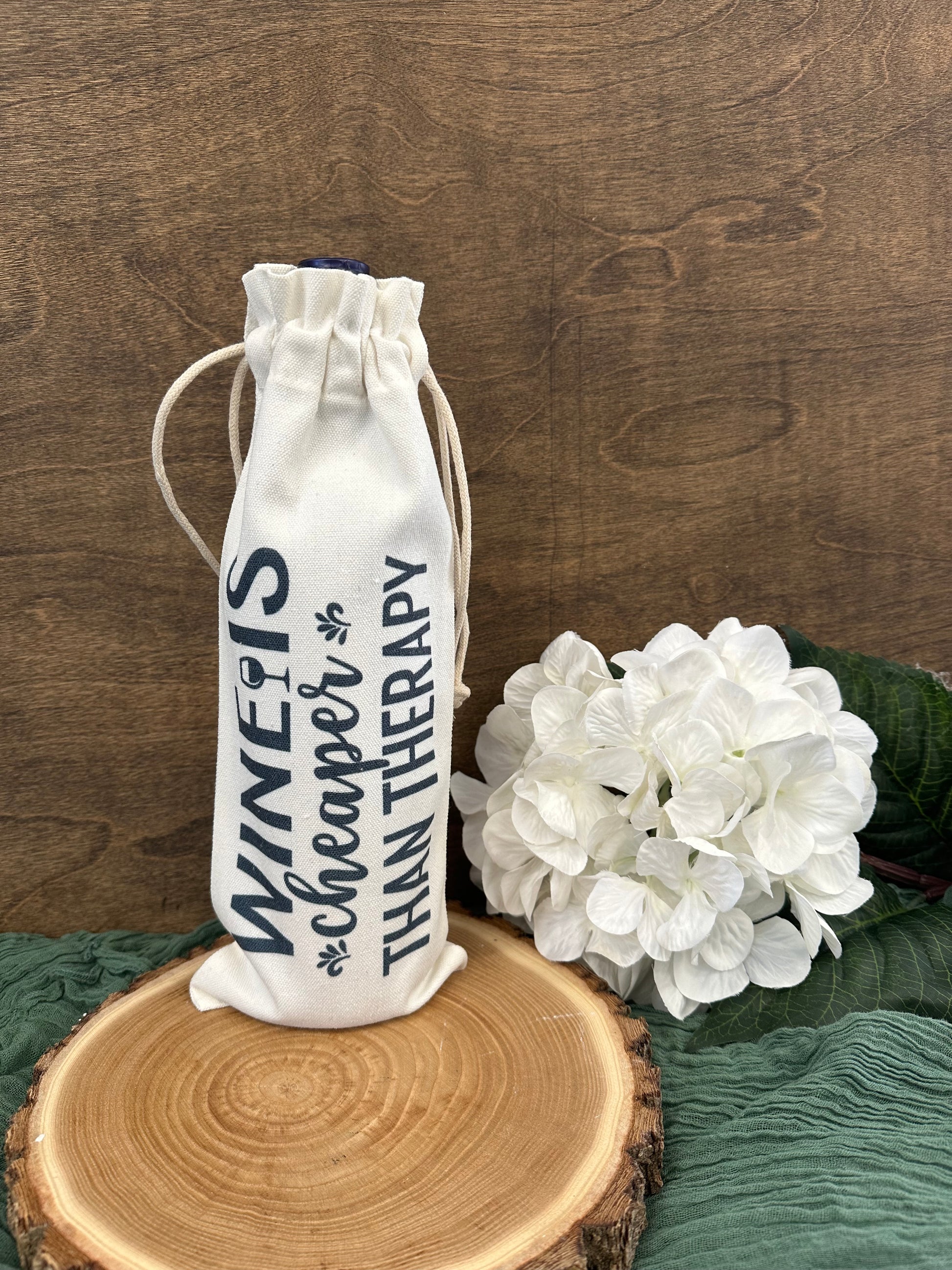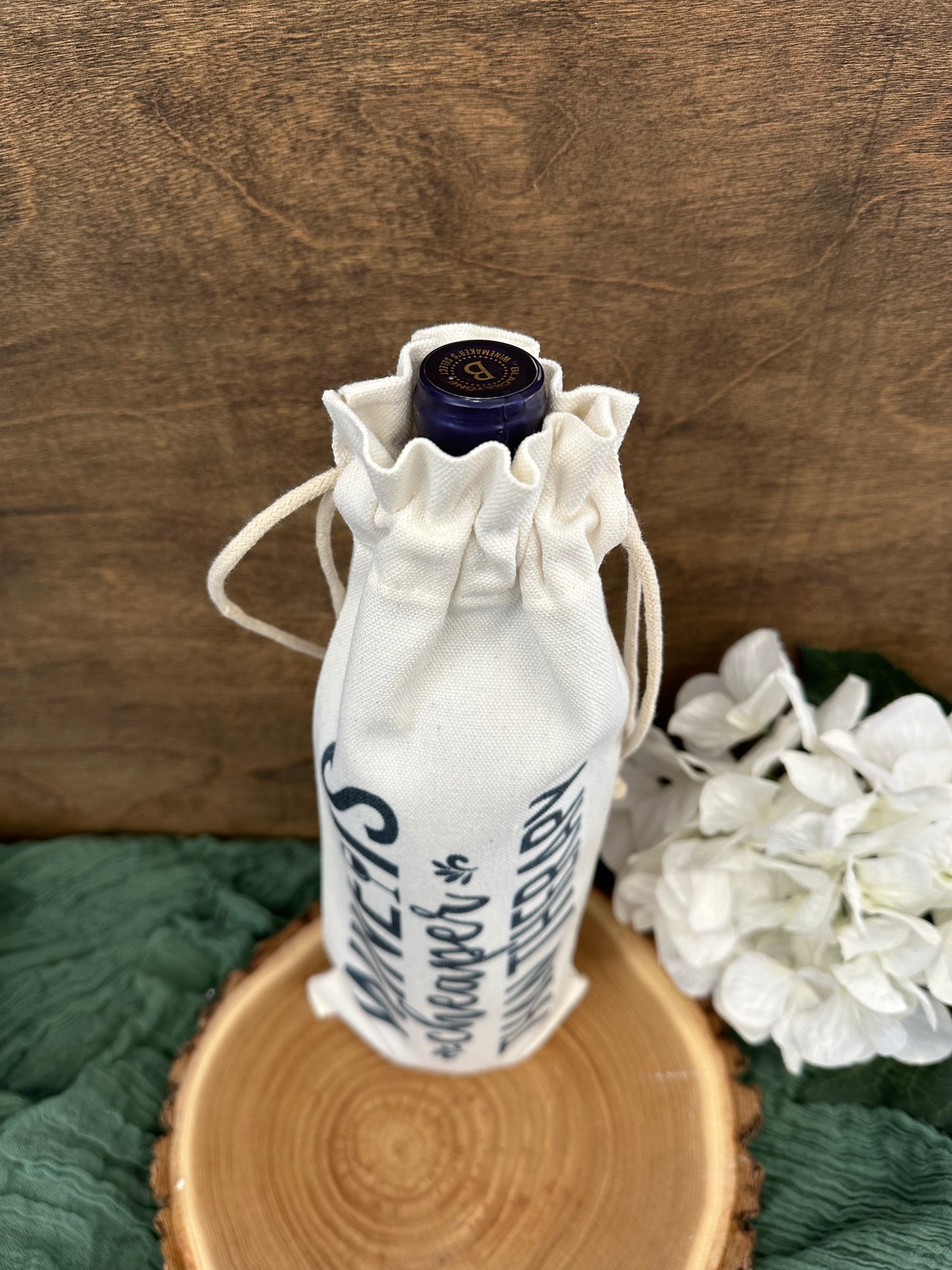Check out our amazing reusable wine bags! These bags are made from premium, durable canvas with a convenient drawstring design, perfect for carrying your favorite bottles of wine. You can personalize them with your choice of prints on the front and back. Whether it's an image, a cute saying, or both, we've got you covered. We'll even send you a proof of the layout for your approval before we start production.